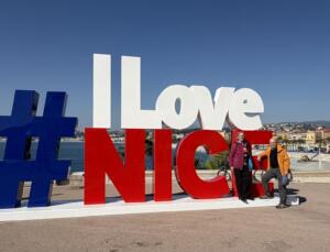 Entlang der Strandpromenade mit tollem Ausblick aufs Meer, spazierten wir zur Cadran Solaire, eine Sonnenuhr, welche auf dem Boden aufgemalt wurde. Daneben trifft man auf die großen „I love Nice“ Buchstaben. Für ein Erinnerungsfoto musste man sich fast anstellen 😉 .