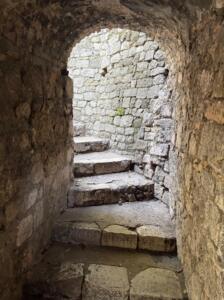 Gegenüber befinden sich die vielen Stufen hinauf zum Schlossberg, es gibt nur mehr ein paar Ruinen, dafür aber einen tollen, künstlichen Wasserfall. Mit traumhaften Aussichten wurden wir immer wieder belohnt, außerdem auch mit Kaffee und Crêpes 🙂 .